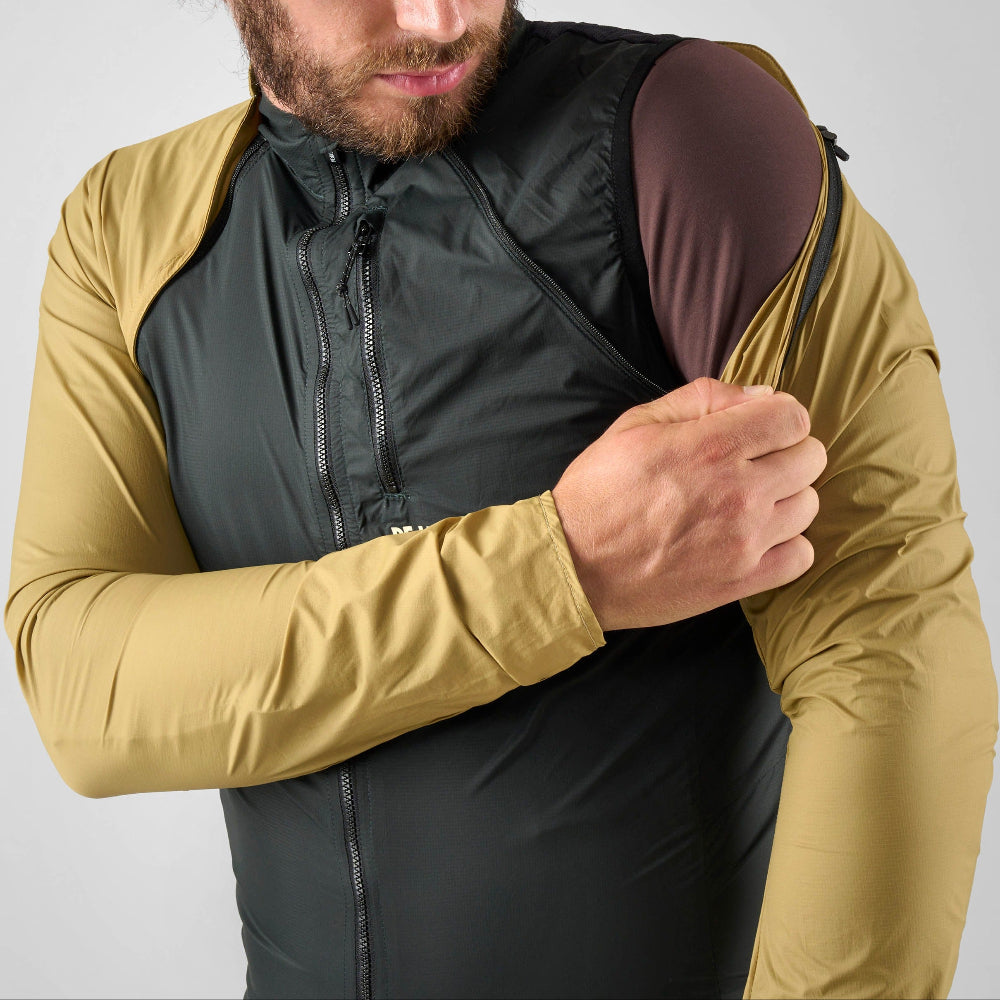 軽量で通気性の高いファブリックを採用し、袖を取り外せばジレ(ベスト)としても使用できる2WAYデザイン。